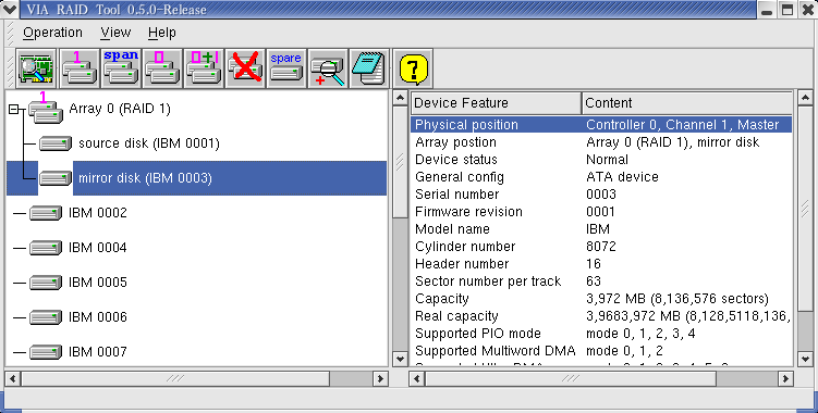 By VIA RAID Tool, you can create various types of RAID disk arrays, remove disk arrays, verify&synchronize mirror disks...etc. Further details for these features are presented in the following Functions Overview.