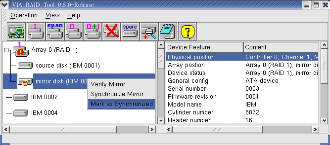 mirror disk's icon in Array View, and execute the Mark Mirror